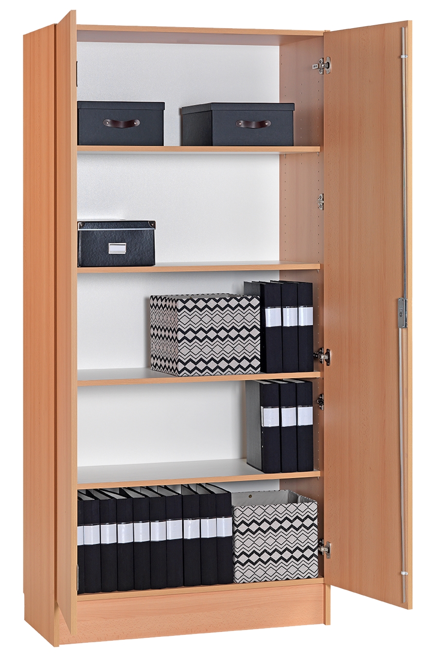 Inredning: 4 flyttbara hyllplan. Lika låsning och Unik låsning/System. Tillägg för lamellhyllplan - tillägg/skåp.